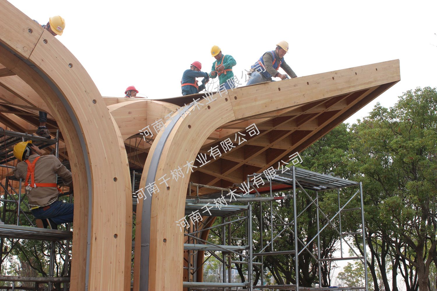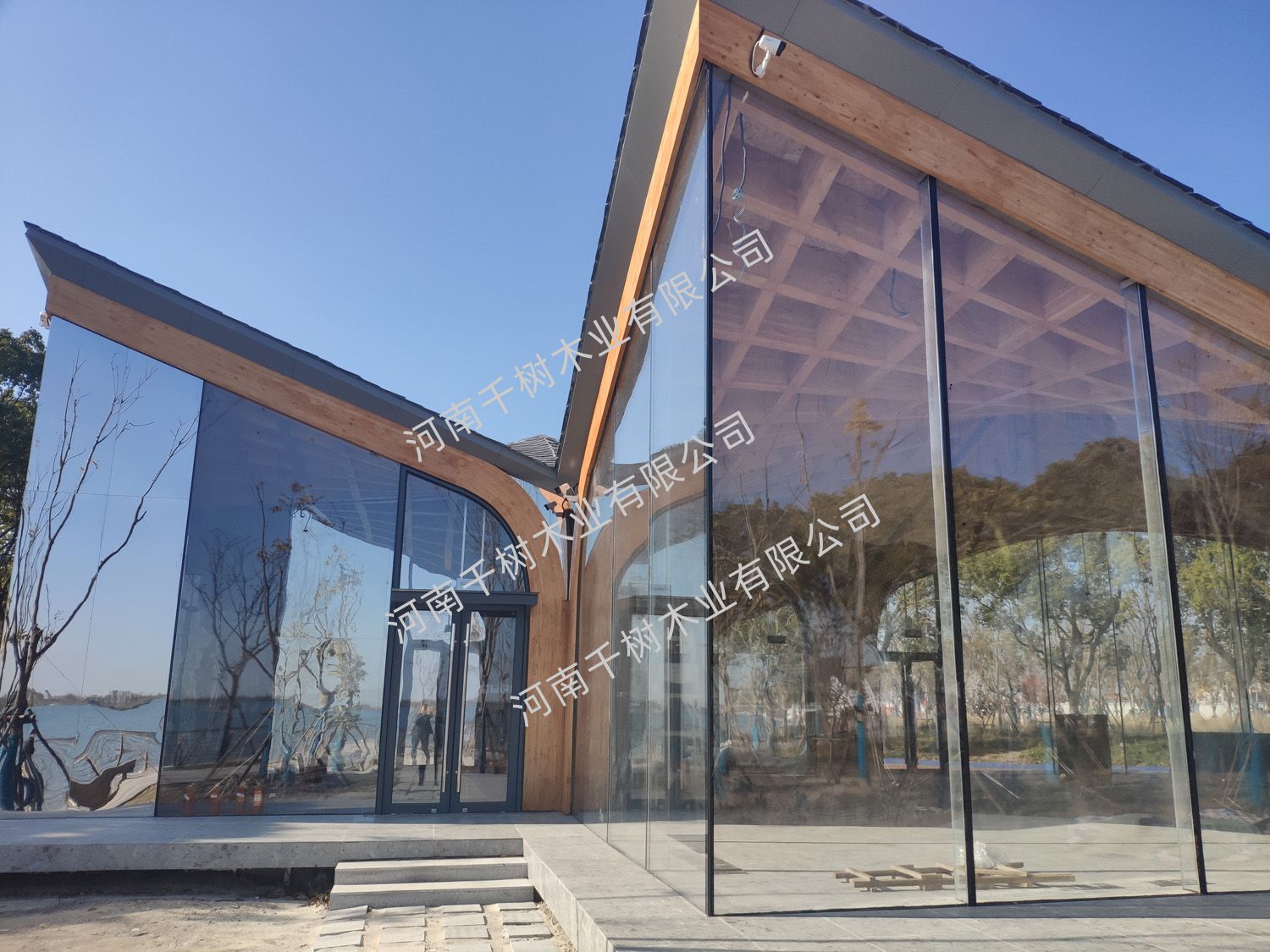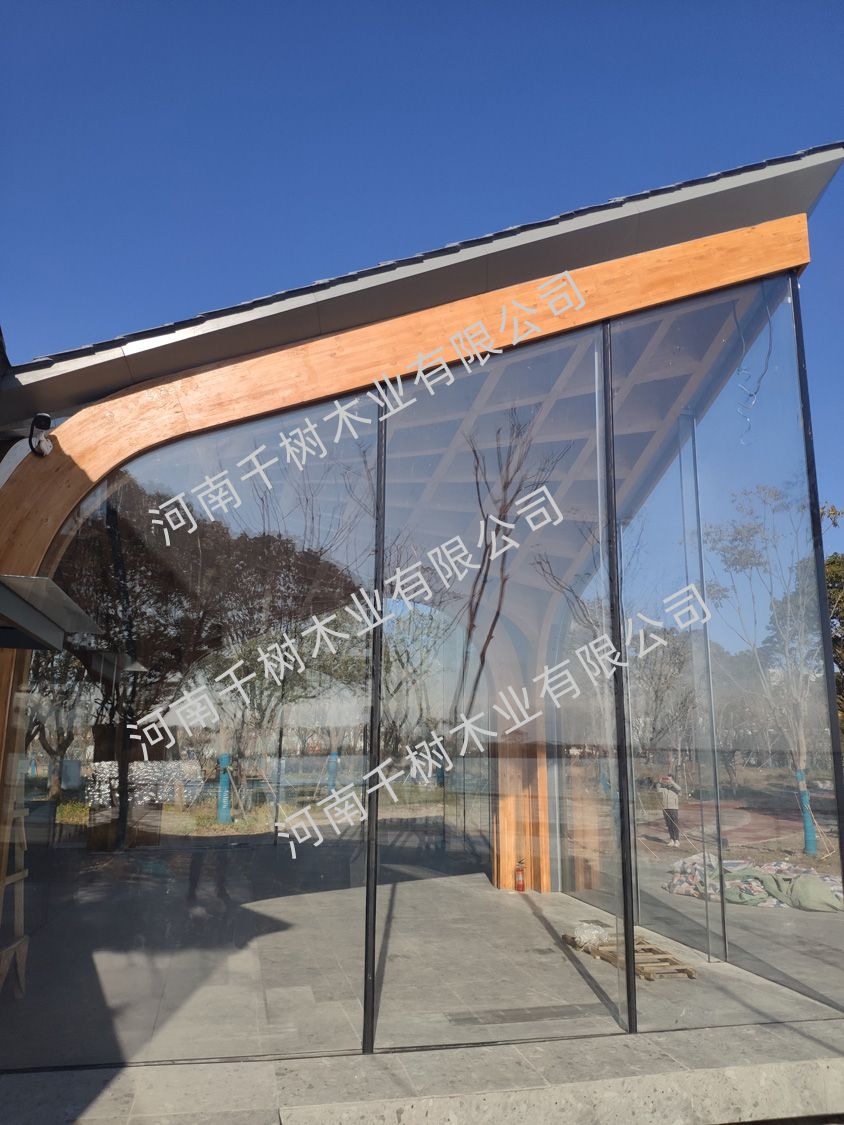 項目參數(shù):花旗松雙曲面膠合木框架,建筑面積260平米