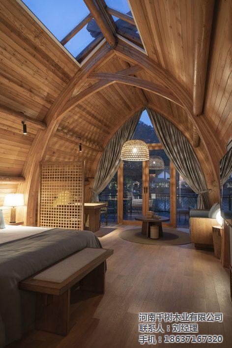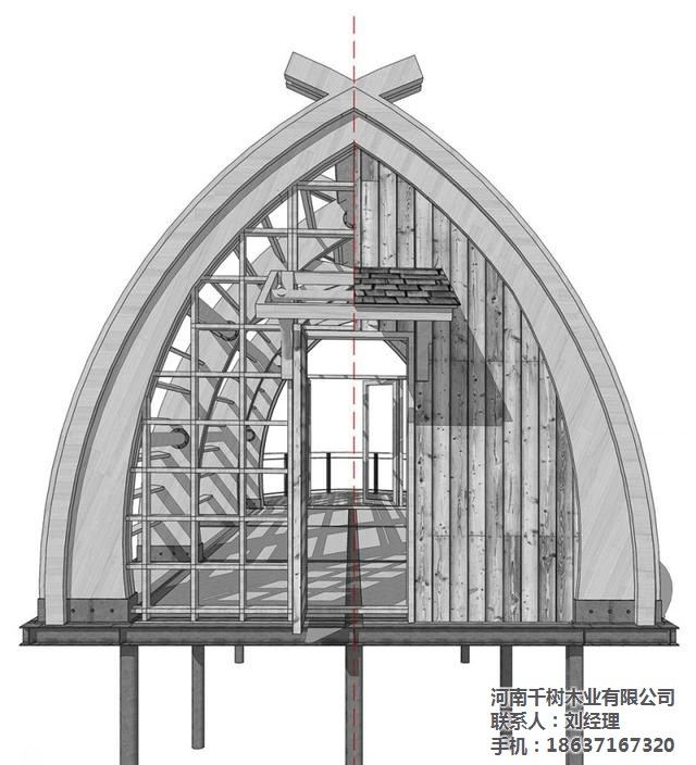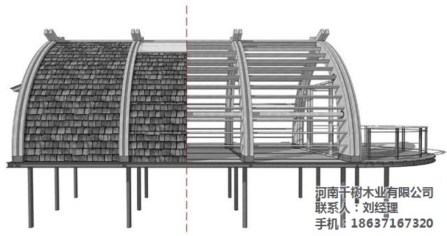 ▼建筑內(nèi)外清晰可見拱梁和圓木構(gòu)成的完整結(jié)構(gòu)體系