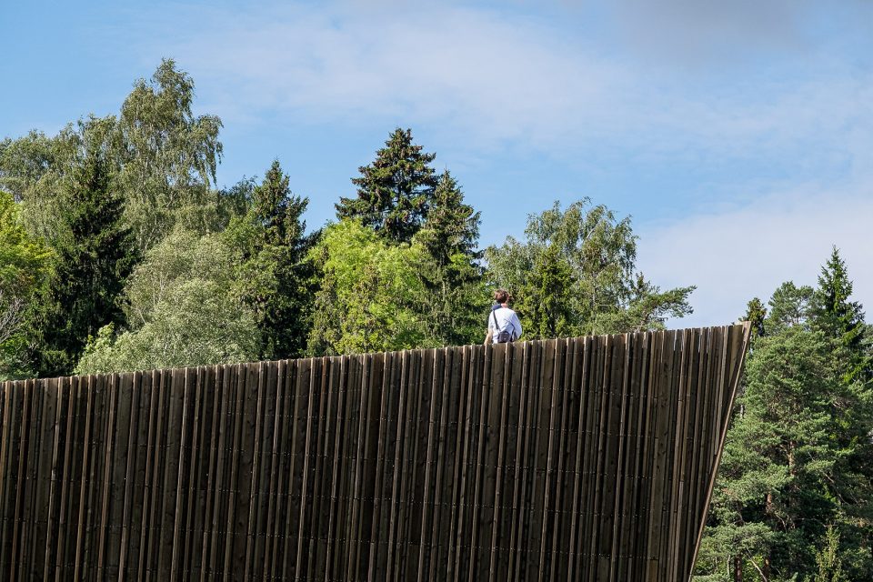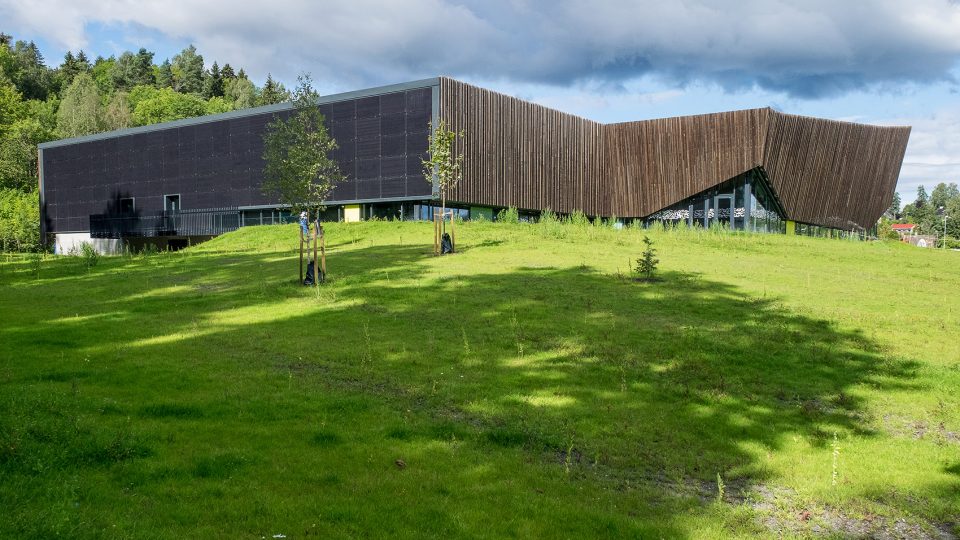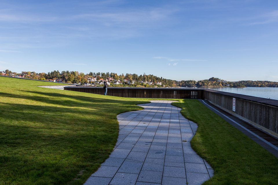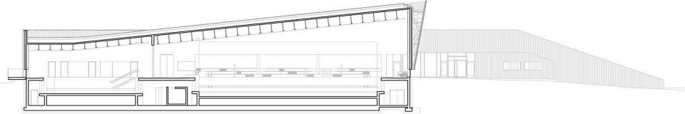Holmen水上運(yùn)動(dòng)中心位于Holmen海灘,這里經(jīng)過(guò)填海造陸,保護(hù)和鞏固了場(chǎng)地的自然屬性。整個(gè)場(chǎng)地被花園覆蓋,為海灘帶來(lái)非凡的美景。該項(xiàng)目旨在活化建筑的屋頂,使之成為海灘休閑區(qū)域的一部分。鋪滿植被的屋頂向南面傾斜,在Oslo fjord的群島和礁石之上形成連續(xù)不斷的景觀。主入口、接待處、更衣室和游泳池皆位于建筑的主樓層,凌駕于向建筑方向傾斜的草坪之上。低處的樓層則容納了體育館、多功能廳、設(shè)備間以及辦公設(shè)施等。