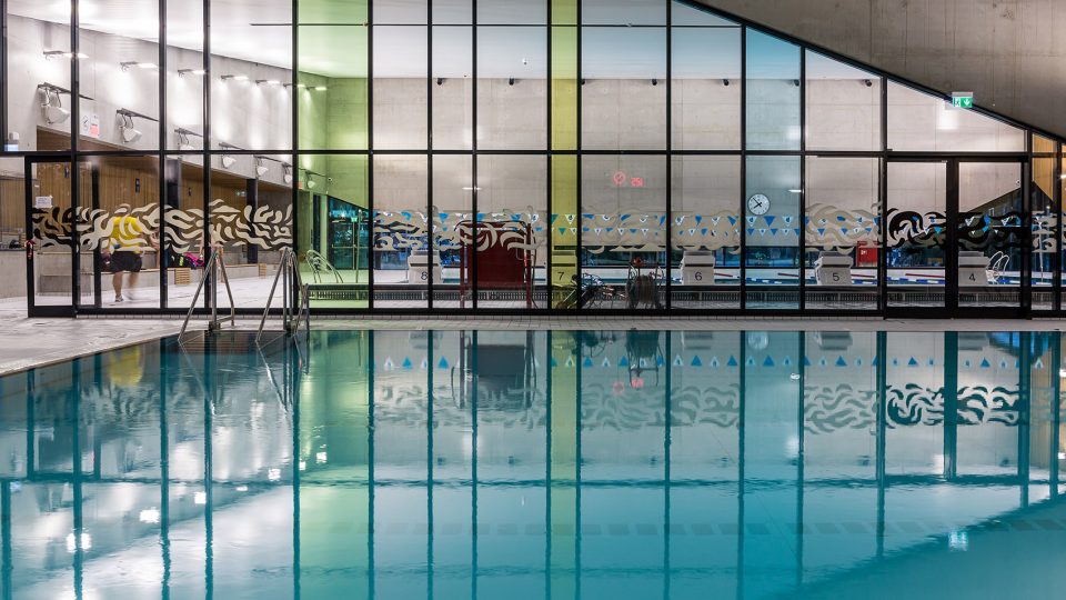 ▼主入口、接待處、更衣室和游泳池皆位于建筑的主樓層
