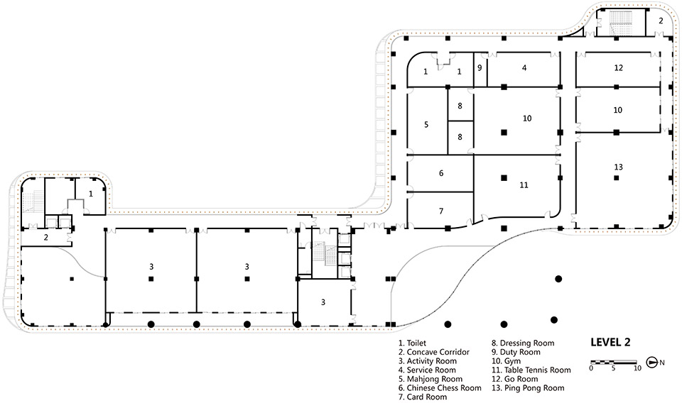 建筑的理念根源于對項目背后的人文內涵的思考:建筑師希望要創(chuàng)造一個適于退休人員的空間,而這些退休者的青年時期大多是在文革中度過的。盡管歷史對文革的評價是負面的,但文革時期形成的“集體式生活”多少還是為那個時代留下了些溫暖的記憶。退休者對于命運多舛的時代的歸屬感是建筑師對于現(xiàn)代生活的孤立與冷漠做出批評的立足點。