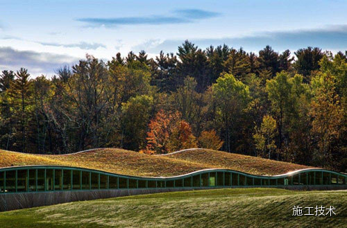 這個(gè)總面積達(dá)16500平方英尺的建筑屋頂由植被覆蓋而成,與周圍植物的顏色一致,有利于建筑物與自然風(fēng)光相互協(xié)調(diào)。從某些角度,建筑幾乎消失于人們的視野 之中。當(dāng)?shù)刎S富的可再生建筑材料在整個(gè)建筑框架、桁架、欄桿、單板和木材復(fù)合板中都得到了充分應(yīng)用。欄桿是在當(dāng)?shù)厥崭睢⒀心?、烘干后進(jìn)行再裝配的。