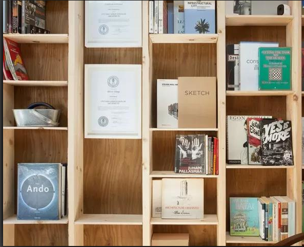 在內部,設計師團隊需要利用每一寸可用的空間。垂直螺柱裸露在外,并作為支架支撐,以及由樺木膠合板制成的更大的水平表面的錨。