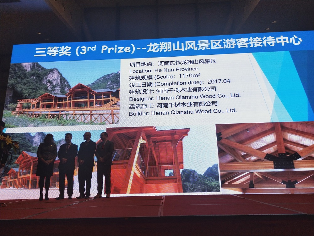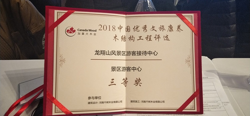 本次評選得到了木結構行業(yè)企業(yè)的積極響應,據了解,組委會共收到了總共15個大類,104個項目,47家公司報送的項目資料。其中,我公司報送了河南焦作龍翔山風景區(qū)游客接待中心項目用于參與景區(qū)游客中心組別的競選。經過歷時兩個月的評選最終該項目喜獲景區(qū)游客中心類別三等獎!