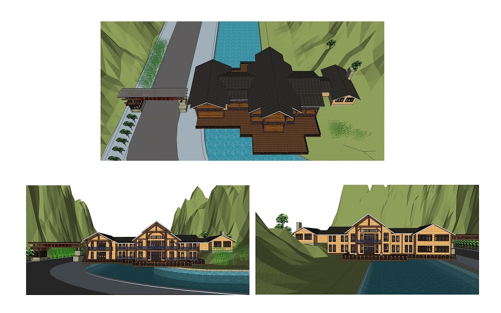 接待中心位于該景區(qū)大門口,總建筑面積1170㎡,分為上下兩層,建筑部分坐落在河面跨度21米的山間河道上方,設計師克服了跨河橋面的撓度問題使得項目施工最終順利完成。本接待中心木屋的主體結構采用的是美國花旗松膠合木,實現(xiàn)了大跨度的結構形式,墻體結構采用了標準的2*4工法施工,外墻掛板采用了紅雪松無節(jié)材。室內設計有中央空調,煙霧報警及噴淋系統(tǒng)。功能布局有接待廳,辦公室、母嬰室、民俗展示區(qū)、公共衛(wèi)生間及會議室。通過先期的設計,在保證項目的功能性及節(jié)能效率上發(fā)揮最大作用,地面使用率達到最高且建造速度快,安裝時不受氣候條件影響,同時最大限度的減少現(xiàn)場施工量,縮短施工周期,項目完成用時90個工作日,該項目自2017年4月交付使用以后受到甲方及游客的一致好評。