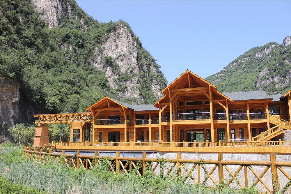 河南焦作龍翔山旅游度假區(qū)接待中心項目是目前河南省最大的單體花旗松膠合木項目,最大跨度達到10m以上,為河南木結構行業(yè)的發(fā)展起到了帶動作用。