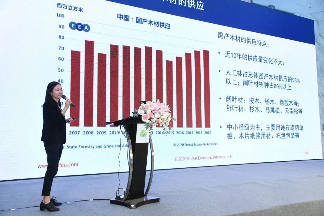 △ 美國(guó)林業(yè)經(jīng)濟(jì)顧問(wèn)公司中國(guó)運(yùn)營(yíng)經(jīng)理郭丹女士發(fā)表主題演講