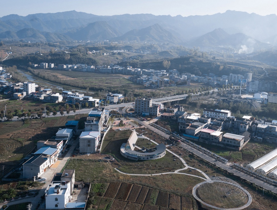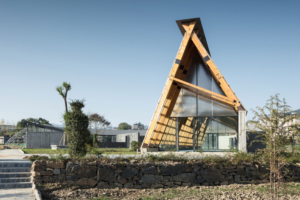 在竹溪縣龍壩鎮(zhèn),一條新的市政道路“長龍大道”以30度的切角與原有鄉(xiāng)鎮(zhèn)的的主入口交叉而過,在與原有鄉(xiāng)鎮(zhèn)的主干道之間的三角形地塊,便是草莓園活動館和采摘園的用地。龍壩鎮(zhèn)政府希望以草莓的培育,采摘以及相關(guān)體驗活動,作為龍壩鎮(zhèn)田園經(jīng)濟的新起點,在新老道路的交叉口,形成鄉(xiāng)村活力的切入點。