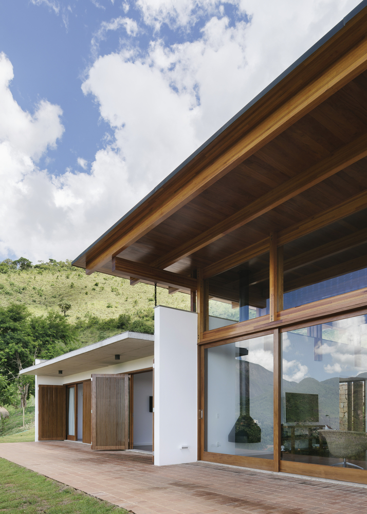 這些方案的連接形成結(jié)構(gòu)軸心,創(chuàng)造了兩條連接到外部的路徑:縱向的軸可以變?yōu)榻^美的外部景觀,至于另一條橫向的軸線,則可以明確表現(xiàn)出多種多樣的交叉路口和配制出房屋的居住形式的環(huán)境。單層的構(gòu)造再一次確保了環(huán)境之間連續(xù)性以及內(nèi)外空間連續(xù)性的這一前提。通過(guò)擴(kuò)展房屋在同一區(qū)域中的所有內(nèi)在應(yīng)用,探索不同的地塊應(yīng)用與體驗(yàn)得以成為可能。或是在內(nèi),或是在外。只有在游泳池的位置有一處樓層平面變化,其被兩個(gè)臥室側(cè)廳的厚片所整平。
