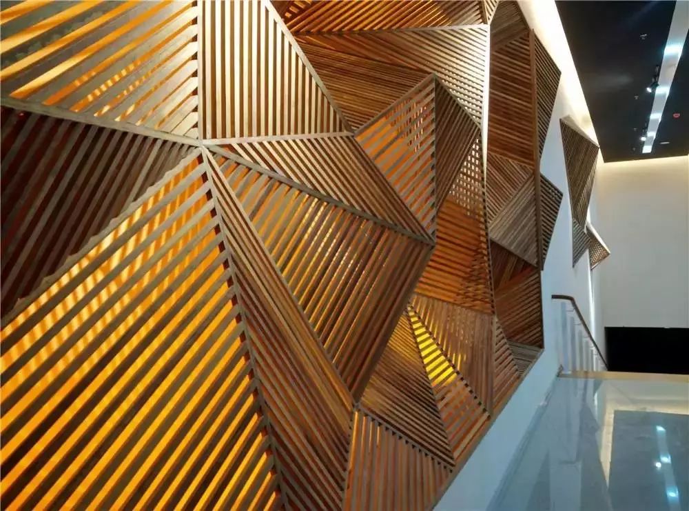 “也許人們會(huì)認(rèn)為石頭是冰冷的、完全是無(wú)機(jī)物的狀態(tài),可我認(rèn)為石頭是會(huì)說(shuō)話的”,設(shè)計(jì)師王剛用竹鋼條材的相互搭接,在墻面上制作了一個(gè)又一個(gè)立體的石塊~