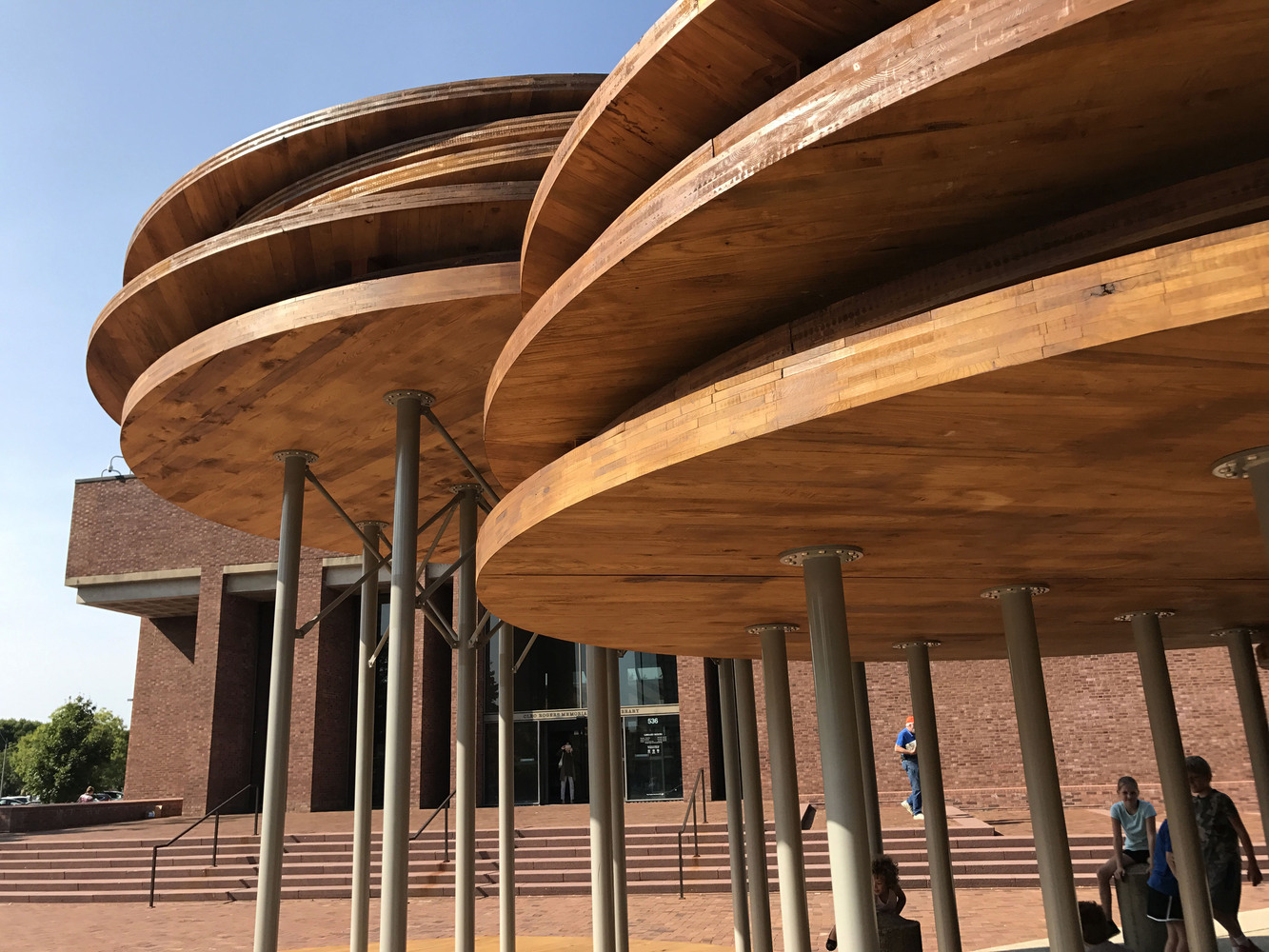 該設(shè)施為社區(qū)提供了一個(gè)不管從字面上還是隱喻上來(lái)看,都聚集,交流并且振奮人心的地方。從位于東半部的摩爾雕塑周邊開(kāi)始,大型木材轉(zhuǎn)盤(pán)組成了一系列向西上升的底座。